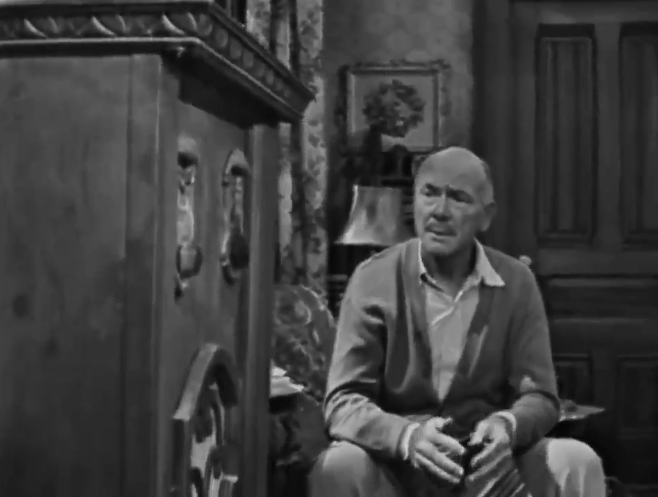 It starts with boarding house members watching television and doing some other things as well. The TV has some weird western going on, then a commercial about green cigarettes (those aren't cigarettes) there's some racing, singing, and other stuff on television to make a point. A man named Ed Lindsay doesn't like this mindless television so, he goes downstairs, to listen to an old radio from 1935. Ed looking fondly on this radio is like someone in 2020 looking back on this phone from 26 years before:
